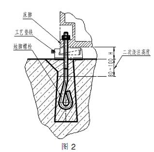 基礎(chǔ)二次灌漿料澆注分兩次進(jìn)行 以控制漿的穩(wěn)定性 首先 將攪拌好的二次灌漿料澆注在二次灌漿坑內(nèi) 上部預(yù)留100-240mm空間圖 用振動棒夯實 固化24小時 然后 將混合好的二次灌漿料灌入二次灌漿坑上部預(yù)留100-240mm空間內(nèi) 要求二次灌漿料的上液面必須高出基礎(chǔ)墊鐵下表面20-30mm封料高度 的高度 保證灌漿料自流充實墊鐵的安裝面 其中20-30mm的封料高度高度 可以制作圍板來實現(xiàn) 但圍板四周必須用水泥或玻璃膠密封好 防止水分灌漿料在養(yǎng)生過程水分流失 封料高度 也可在地基上直