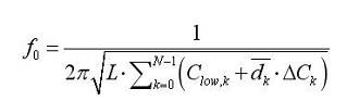在 DCO 中 我們將總電容分成了 N 份獨立的數控變容管 而總電感保持不變 式 2 變成