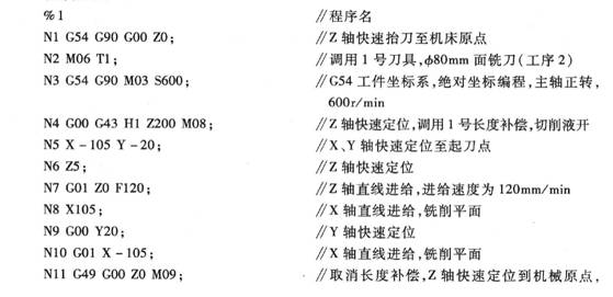 以巾80 mm面銑刀作為基準刀,其他刀與基準刀有一定的長度方向誤差,只需在長度補償輸入相應的長度差值就可以了。