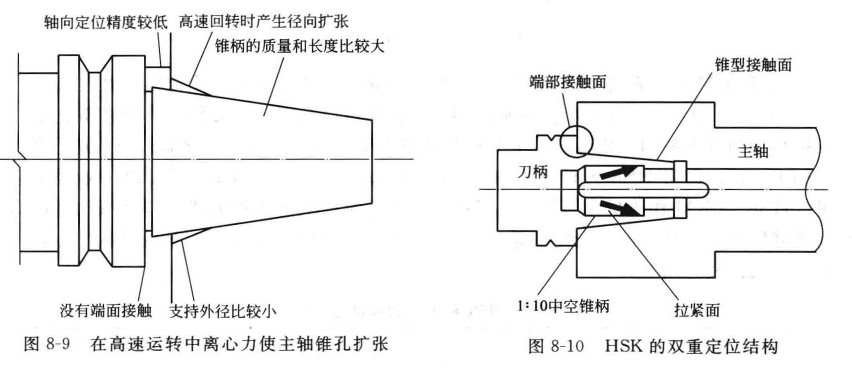 僅僅靠大錐度聯(lián)系,刀具與主軸的銜接剛性相對(duì)較低,當(dāng)主軸轉(zhuǎn)速超過10000r/miH時(shí),由