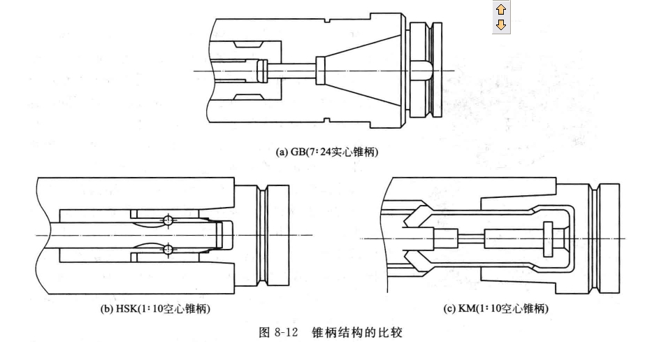 o.o01一o.o025mm),具有適應(yīng)高速旋轉(zhuǎn)和換刀時(shí)間短以及固定與旋轉(zhuǎn)刀具通用等長處,為刀具進(jìn)步切削功率和加工質(zhì)量,減少磨損及破損創(chuàng)造了條件。因而,此類刀柄特別合適高速切削加工。德國已將HSK刀柄正式歸入DIN69893標(biāo)ZB,并取得Iso/TC29專業(yè)委員會(huì)的認(rèn)可。HsK與KM作為機(jī)床刀具接口或作為刀具體系模塊的銜接辦法,是機(jī)械加工向高速切削范疇開展不行短少的一套配置體系。表8—7列出了HsK和KM刀柄的布局特色,三種刀柄的布局比較見團(tuán)8—12。