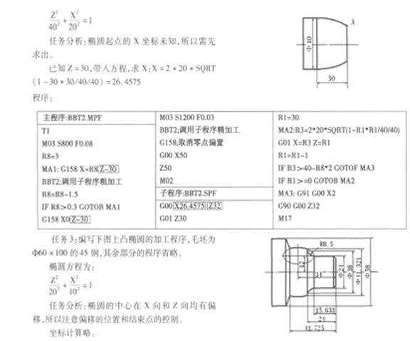 任務 2 :編寫下圖不完整半橢圓的加工程序, 毛 坯為 5 40 @ 100的 45鋼,其余部分的程序省略。